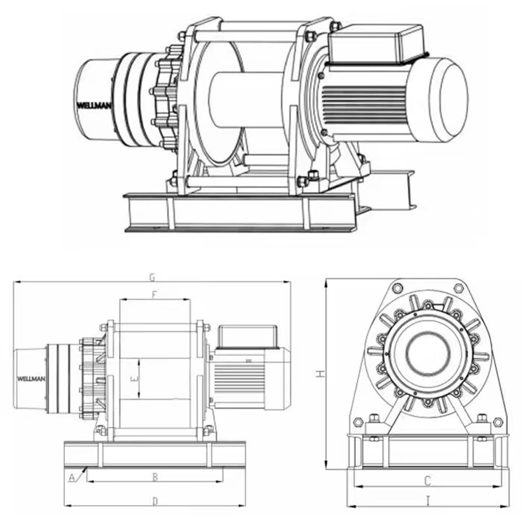 a: ウインチフレームとギアボックス構造: 最高品質の鋼 FCD-45 鋼を使用し、より優れた拡張性を備えています。