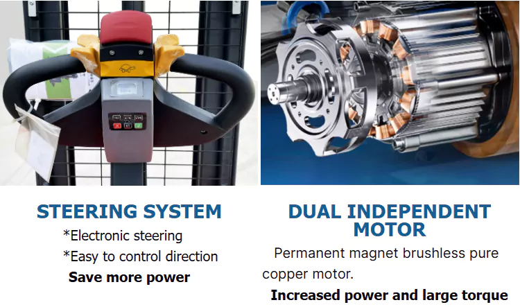 BaiYi の全電動スタッカーは、充電式バッテリーまたは AC モーターを使用して油圧システムを駆動し、荷物を持ち上げます。オペレータは制御ハンドルを使用してパレット スタッカーを移動し、荷物を持ち上げます。そのため、重い物体を頻繁に持ち上げたり移動したりする必要があるマテリアルハンドリング作業には欠かせないものとなっています。